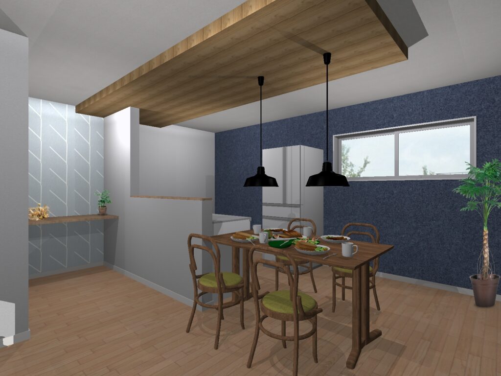 木目の下がり天井がアクセントのダイニング空間✨
