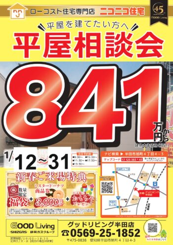 【半田店】1月12日-31日|《同時開催》平屋モデルハウス期間限定値下げ即売会&平屋相談会