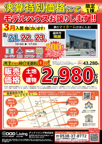 🏠✨【磐田店】 2/21(土)~23(日)限定1棟|特別価格2980万円 平屋3LDK 販売会 ✨🏠