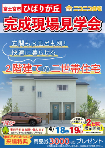 【富士店】4/18(土)4/19(日)限定!二世帯住宅完成内覧会開催